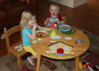 Yes...Milian finished his breakfast first, then started to help Sissy with hers.